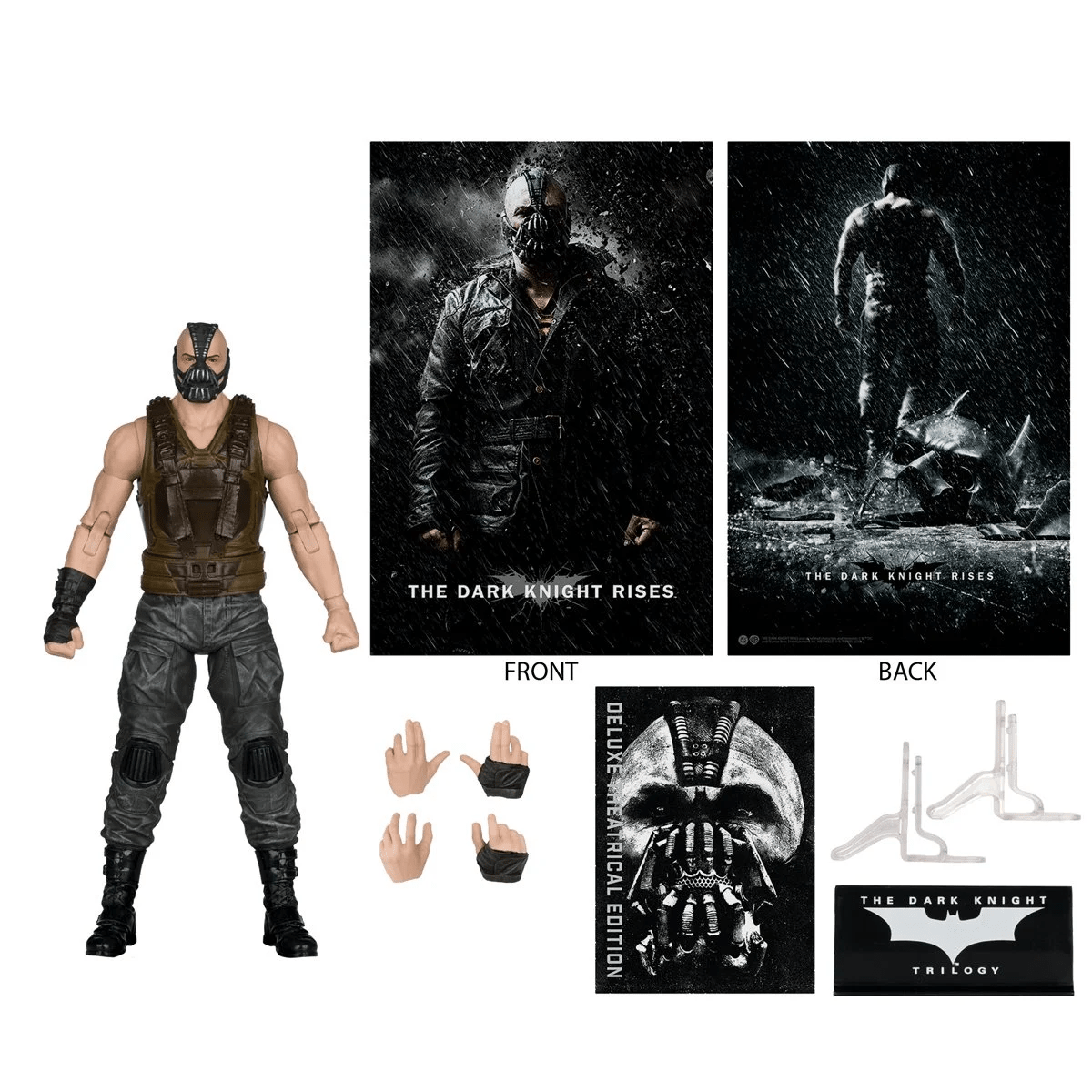 This Deluxe Edition includes 4 extra hands, a character art card, a card stand, a mini poster with display clips, and a figure base. Packaged in a Theatrical Edition window box, this Bane figure captures the imposing presence of Tom Hardy’s iconic portrayal.