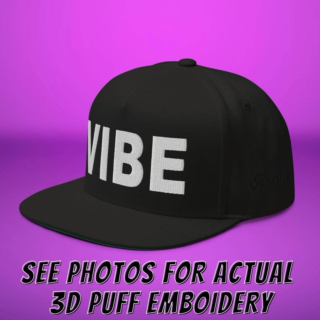 The Vibe Jurassic Hat is here! This black version has "Jurassic" in subtle black embroidery on the side of the cap. All VIBE caps comes with high quality 3D PUFF embroidery for the VIBE text. See second photo for the actual look of the 3D puff embroidery. The high-profile fit and a green undervisor make this cap a classic with an added pop of color.